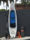 The ultimate touring kayak, the Kayak 330 is a proven long distance performer. With its extended cockpit and bungee straps you have plenty or room for cargo or a second smaller passenger. This extremely stable kayak enables you to explore remote coves, rivers and lakes as well as bays and oceans. The convenience of the backpack and the simple inflation provides a novel, carefree experience for new and experienced paddlers alike. This Jet Kayak has ample volume for two children and provides great stability for larger adults. Put on your backpack, hike to a remote lake and be the first to paddle new waters.